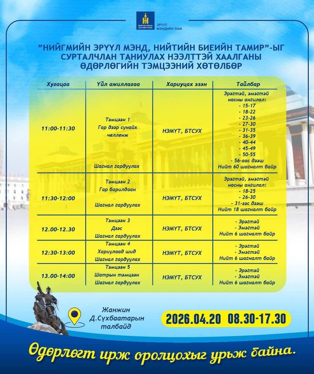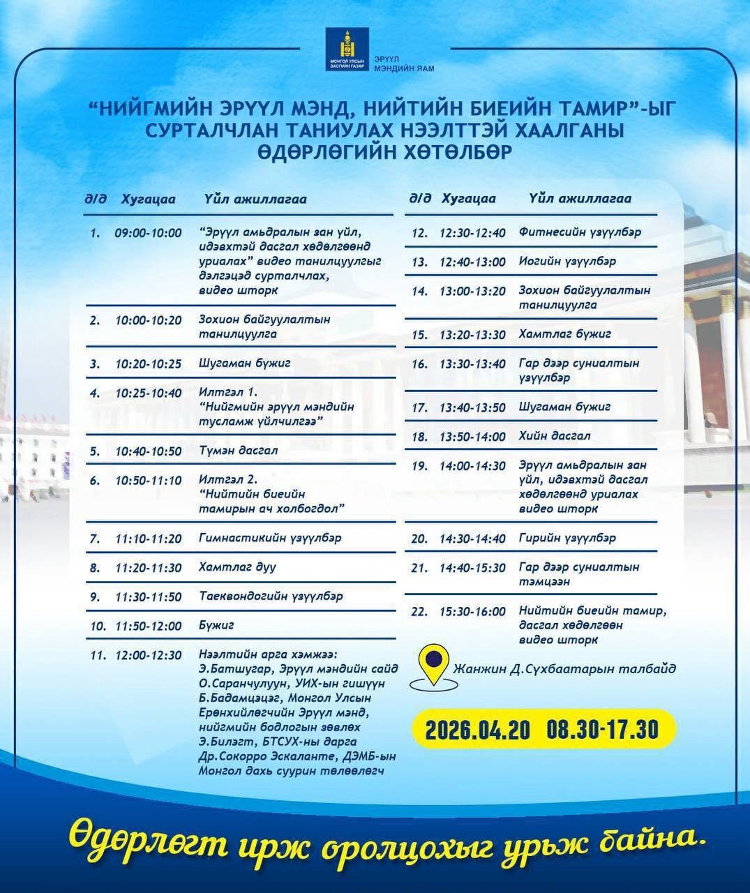 • 2026.04.20 – Нийгмийн эрүүл мэнд, нийтийн биеийн тамир