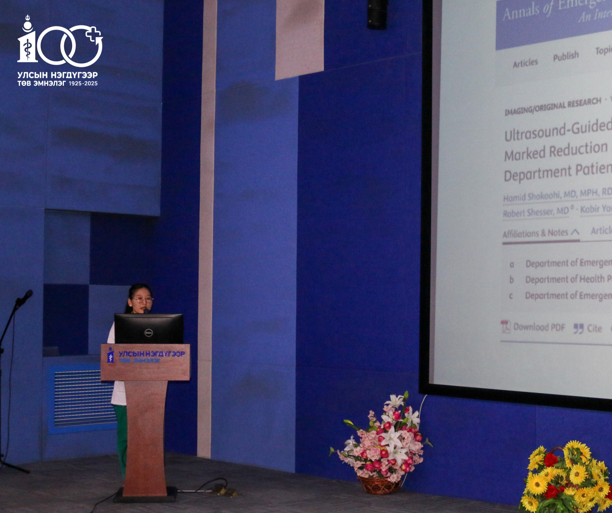 2025 оны 2-р сарын 20-ны өдрийн резидент эмч нарын‘’Journal club’’-д: Яаралтай тусламж судлалын 2-р дамжааны резидент эмч А.Амгалан, Р.Даваахорол нар ‘’Яаралтай тусламжийн тасагт ирсэн амь тэнссэн байдалгүй өвчтөнд хэт авиан хяналт дор захын судсанд хүрц авах нь төвийн венийн судсанд гуурс байрлуулах тоог бууруулсан эсэхийг судалсан үр дүн’’ сэдэвт №010 дах судалгааг амжилттай танилцууллаа.Мөн Зүрхний төвийн залуу эмч Г.Насандэлгэр Нийт резидент эмч нарт “Зүрхний цахилгаан бичлэг үнэлэх"сэдвээр мэдээлэл хүргэж, туршлагаа хуваалцсанд талархалтай байна.
