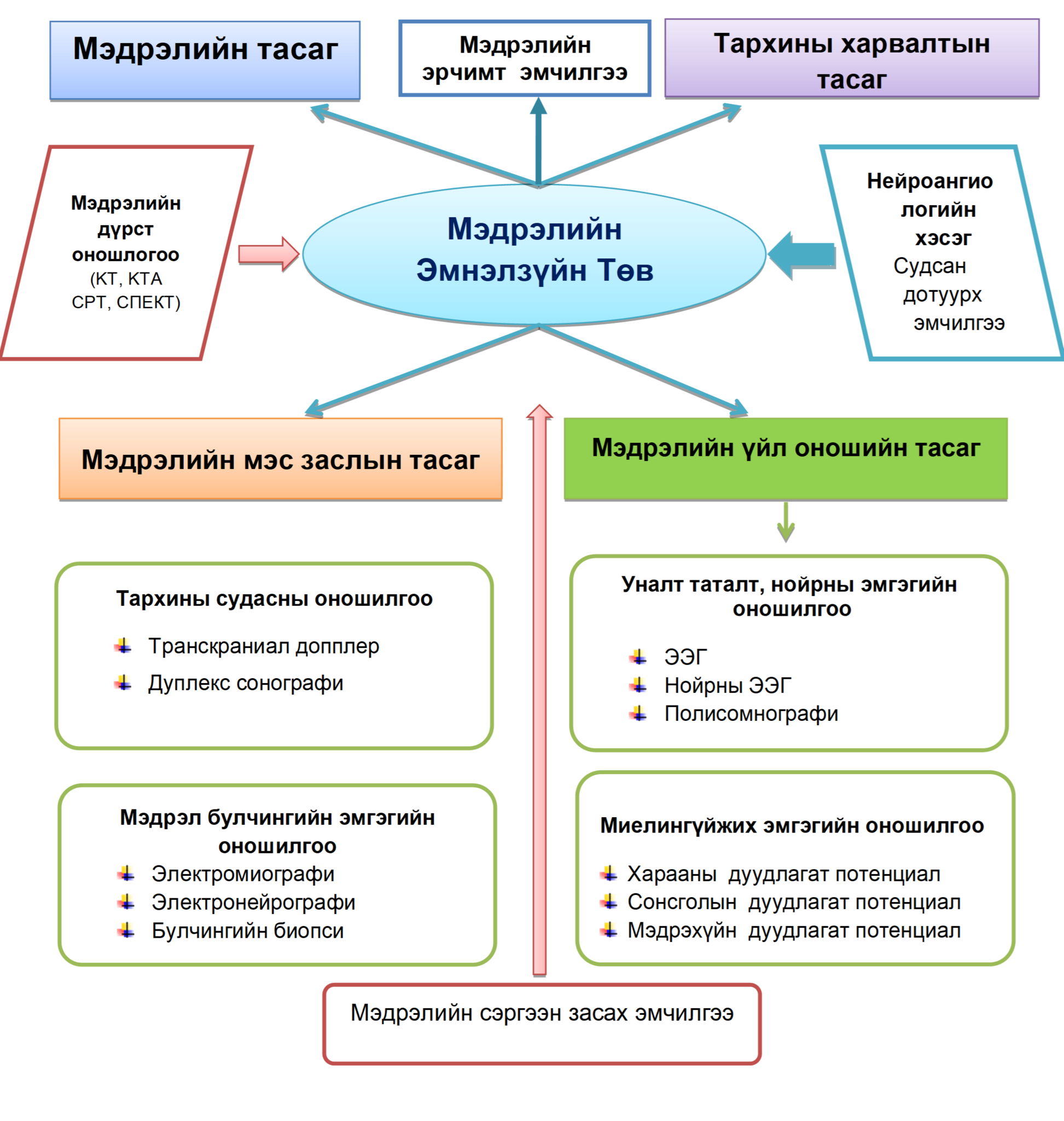 - Мэдрэлийн мэс заслын тусламж - тархи, нуруу нугас, захын мэдрэл, судасны мэс засал