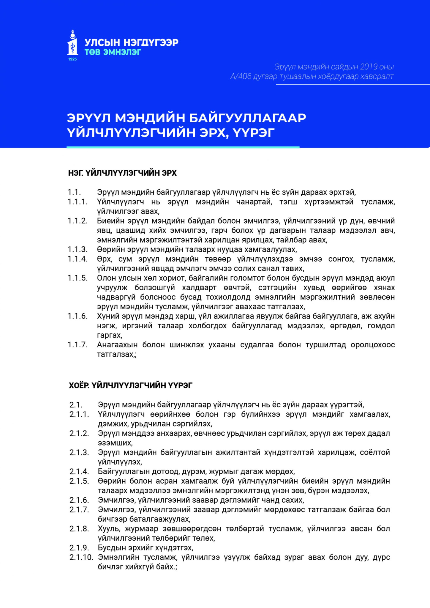 Эрүүл мэндийн байгууллагаар үйлчлүүлэгчдийн эрх, үүрэг